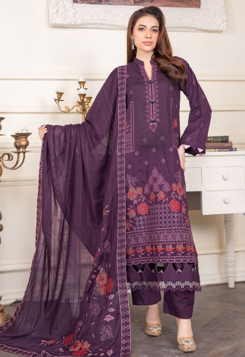 The Alif By Eman Arts Vol 50 Design-08 reflects timeless elegance with rich embroidery on a deep plum base. Designed for women who appreciate classic luxury and comfort, this premium 3-piece unstitched lawn suit is ideal for summer wear, casual sophistication, and semi-formal occasions.