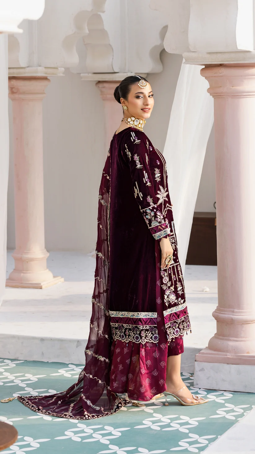 Andaz Makhmal by Zebtan ZAM 09 | Dark Pink Velvet Suit