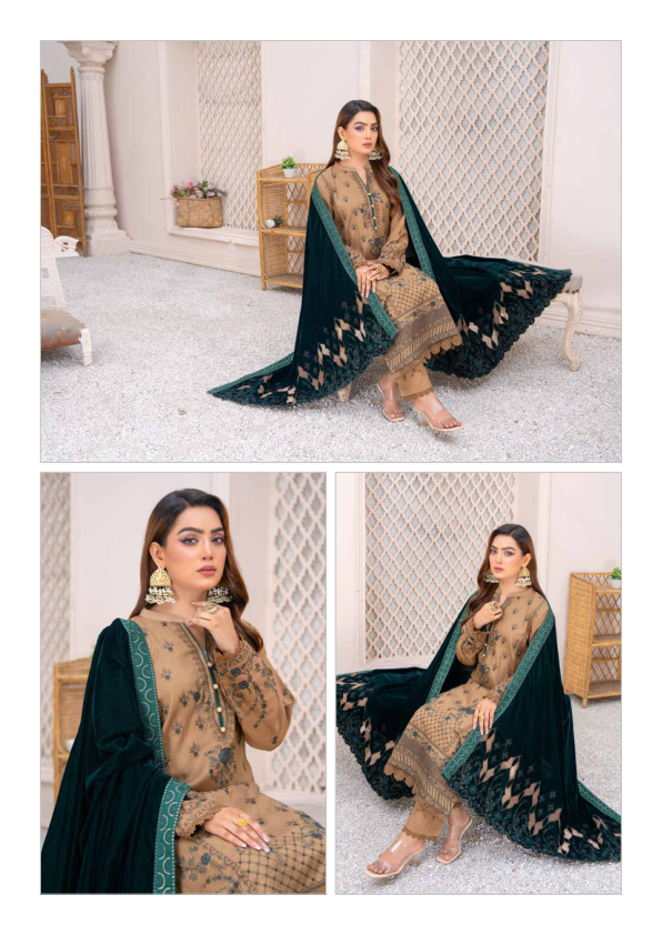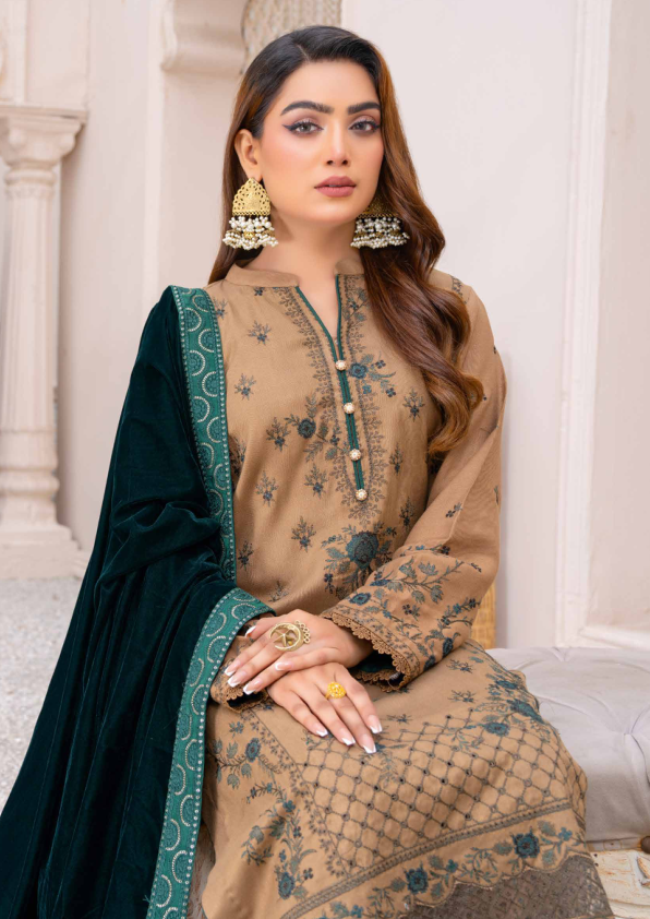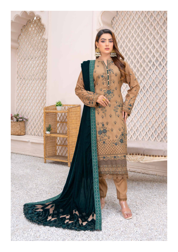 The Bin Rashid Libas Mahal Design-02 collection introduces the Premium Peach Collection, a luxurious and versatile choice for your winter wardrobe. Designed with attention to detail, this 3-piece unstitched dress design reflects elegance and sophistication, perfect for formal occasions or winter festivities.