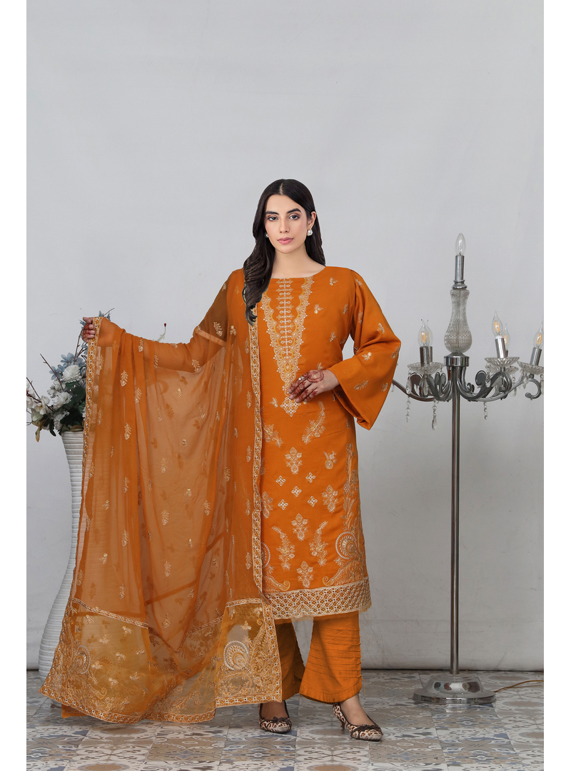 - Embroidered Swiss Lawn Shirt: The front, back, and sleeves are adorned with intricate embroidery on premium Swiss Lawn fabric