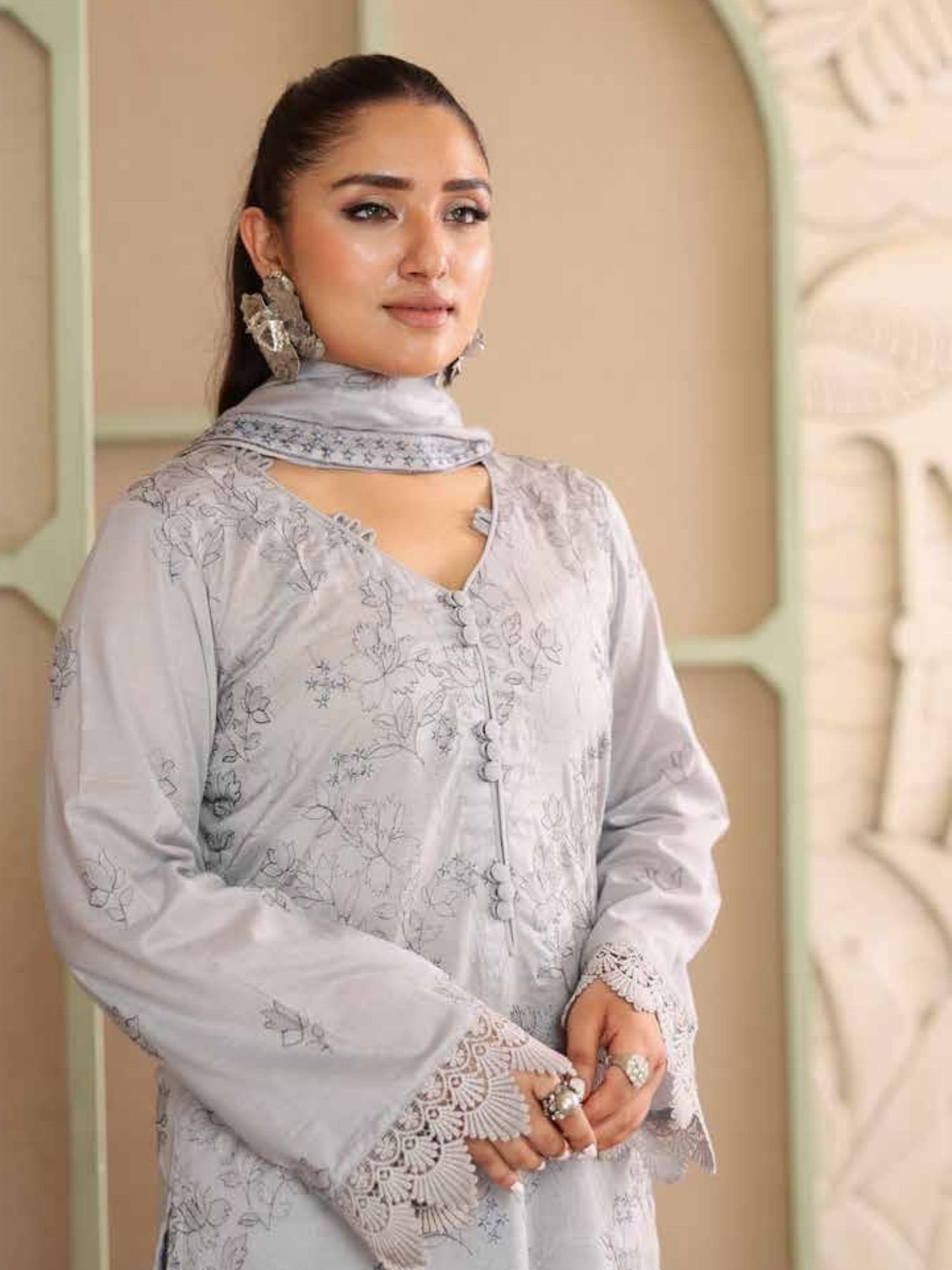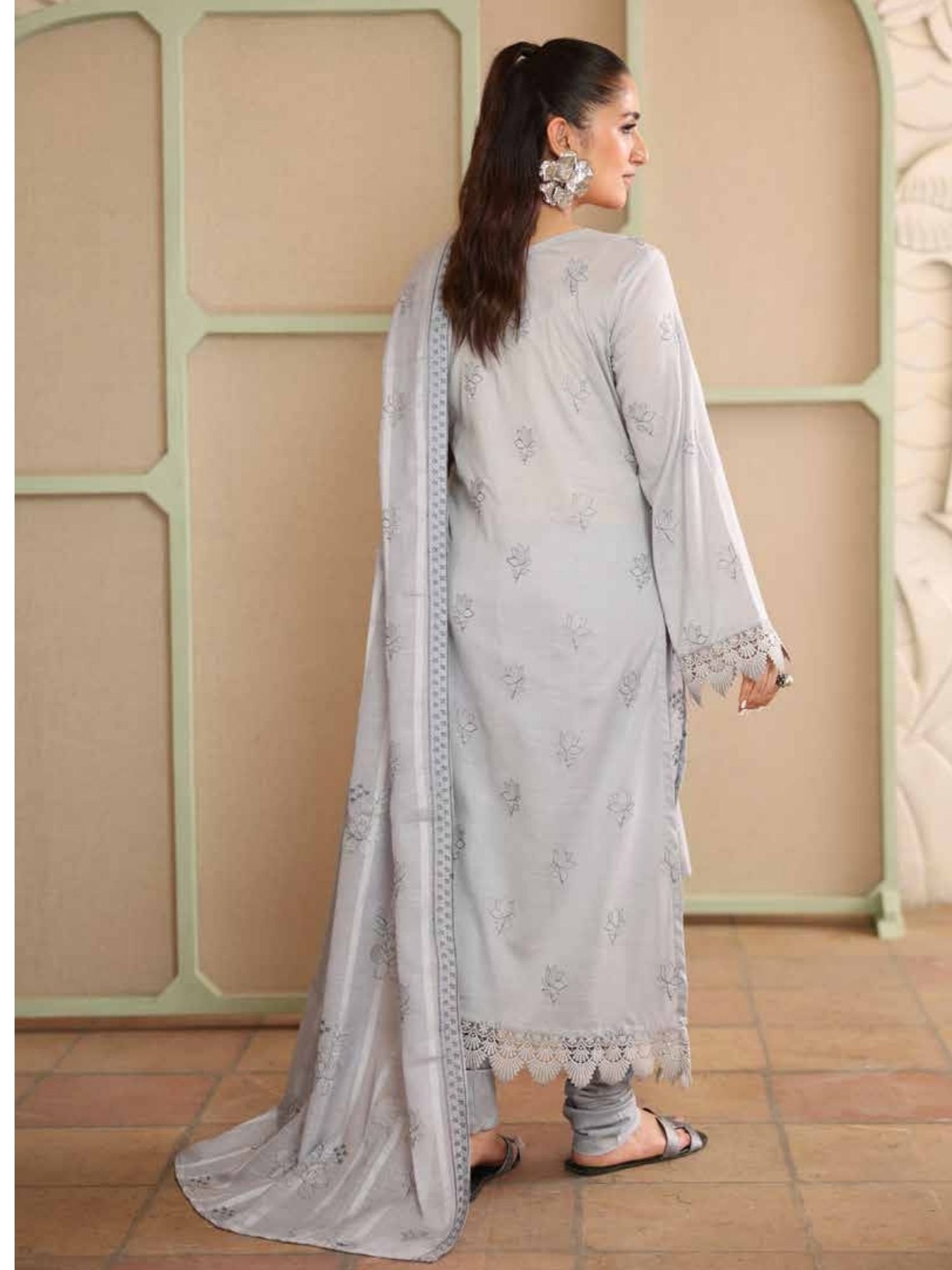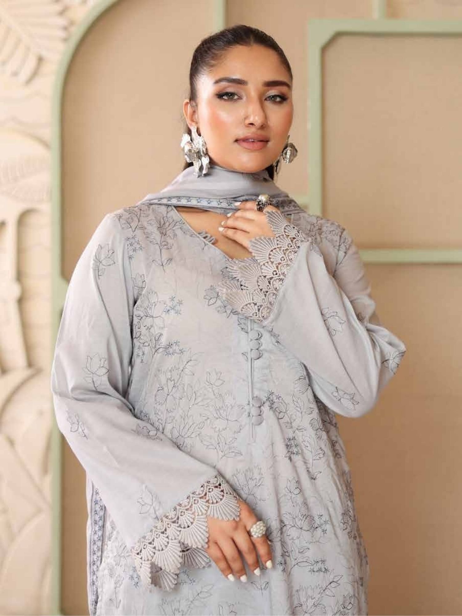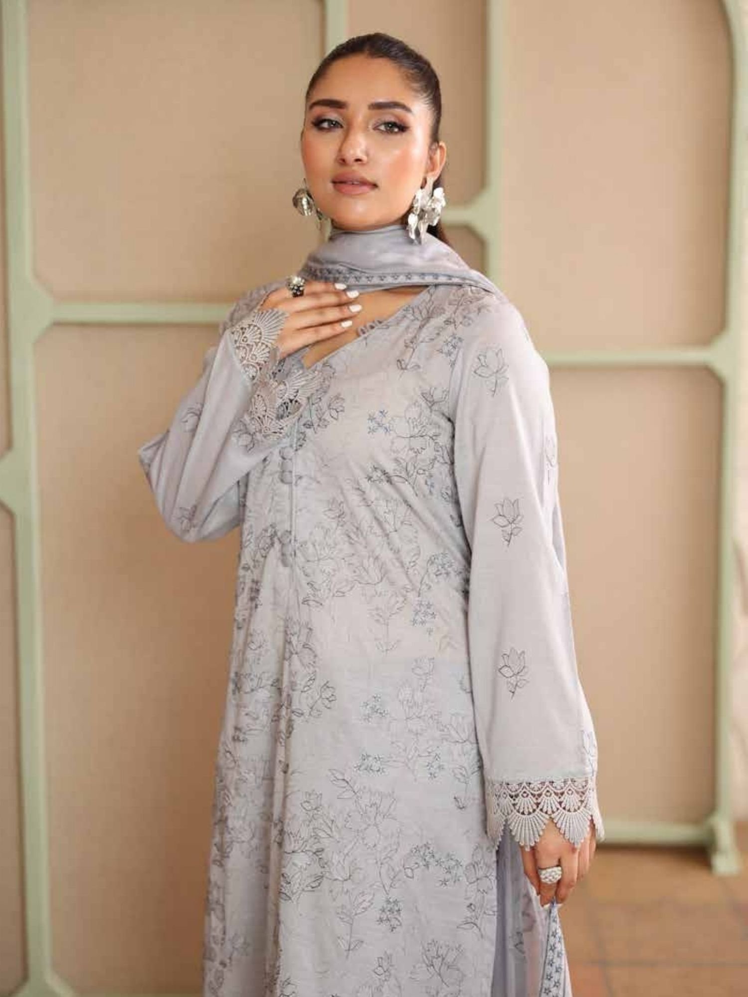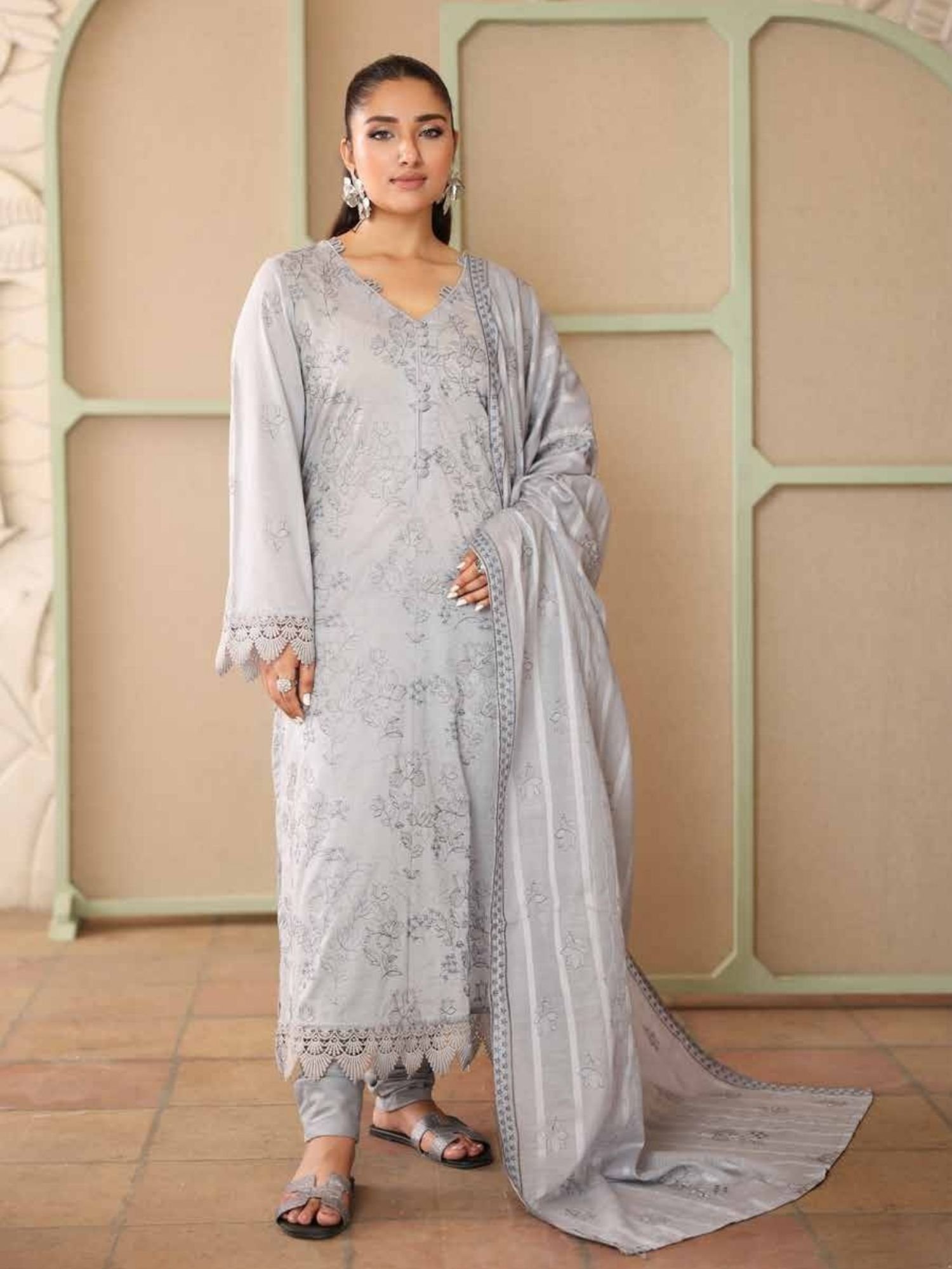 Features delicate all-over embroidery on premium lawn fabric, enhanced with refined neckline detailing and elegant sleeve finishing. - Stylish Dupatta with Lace Borders: