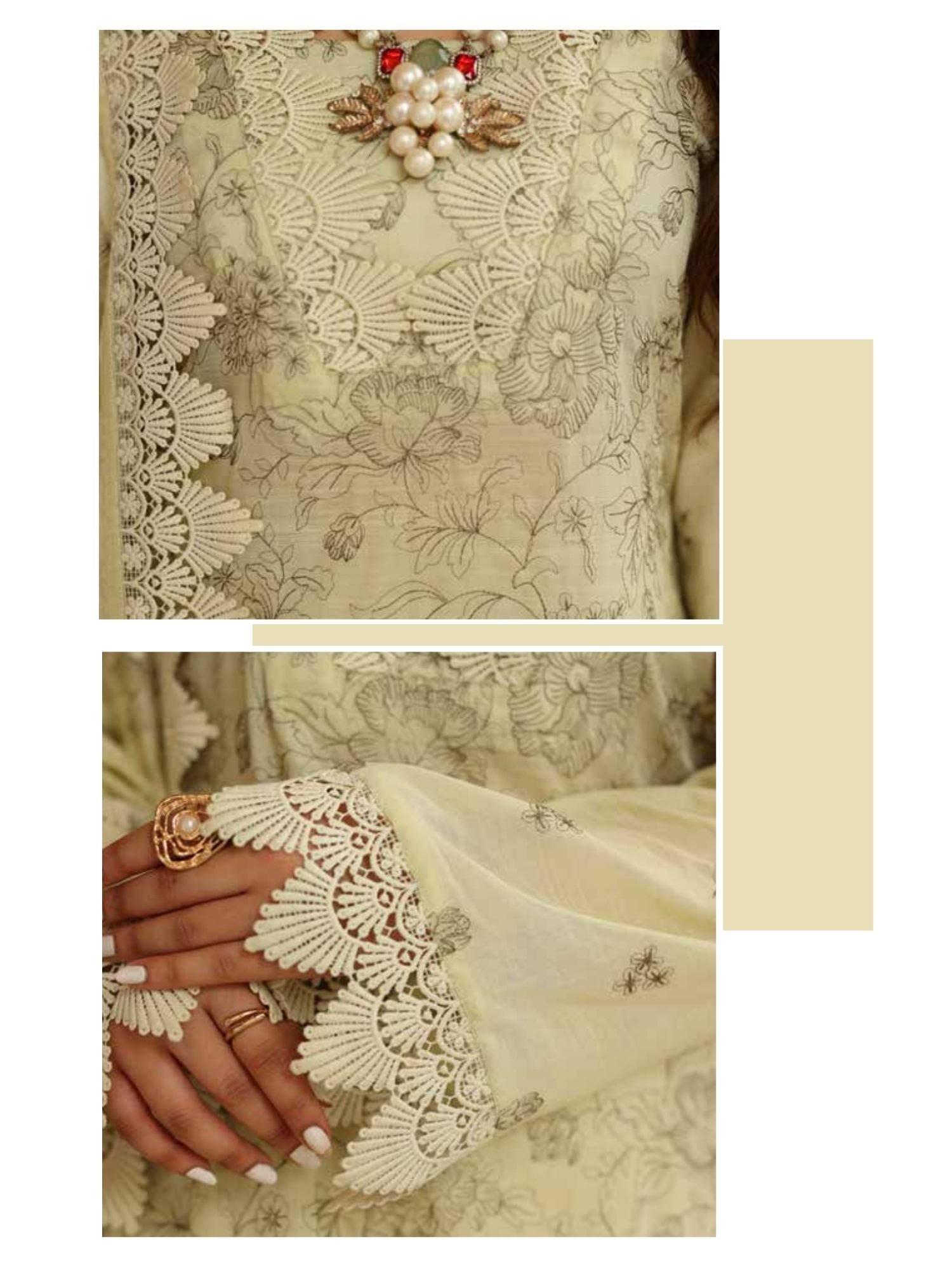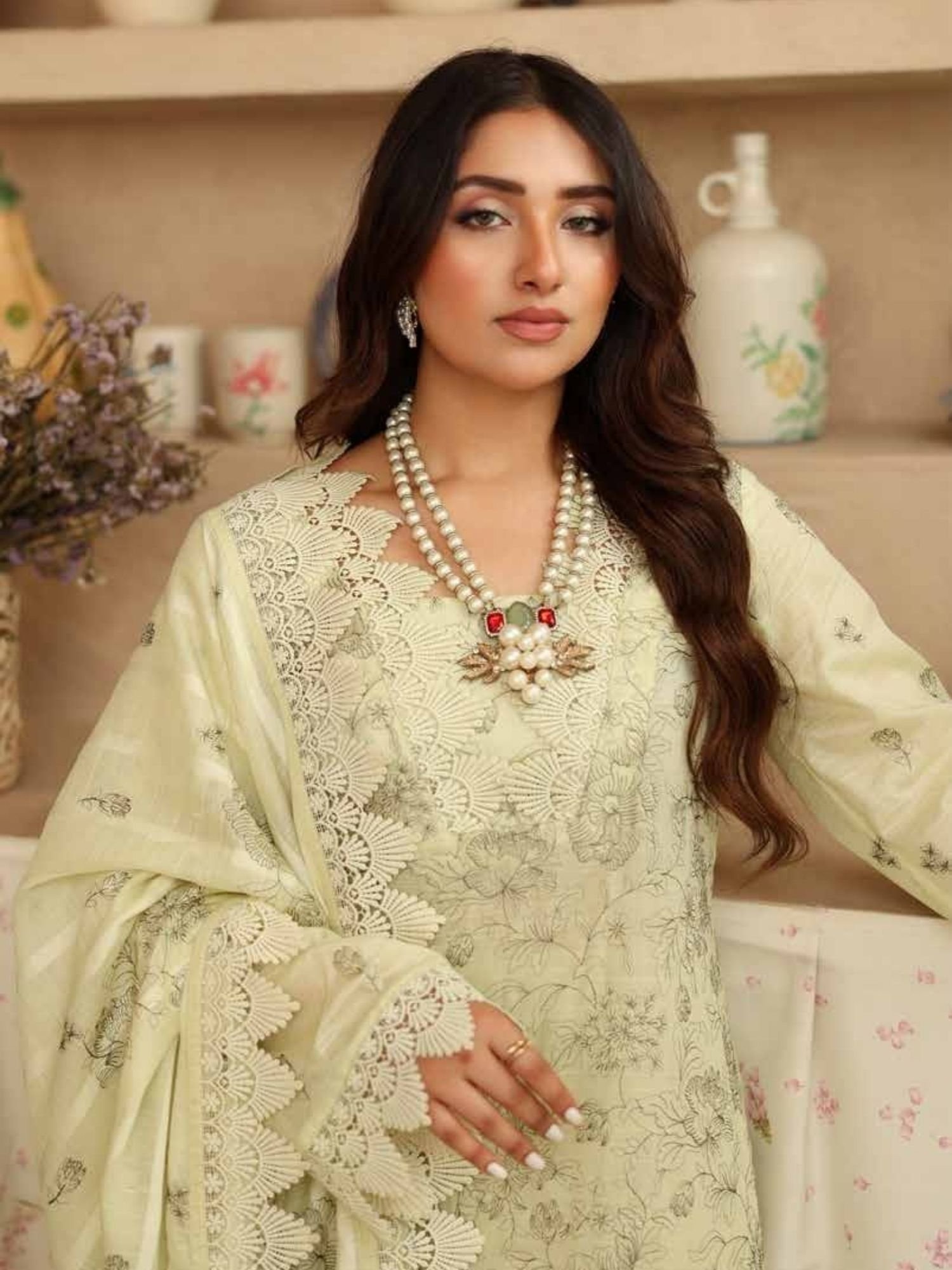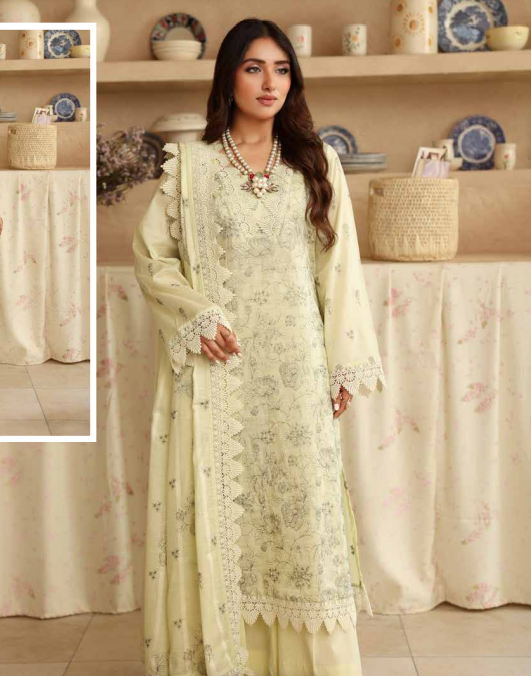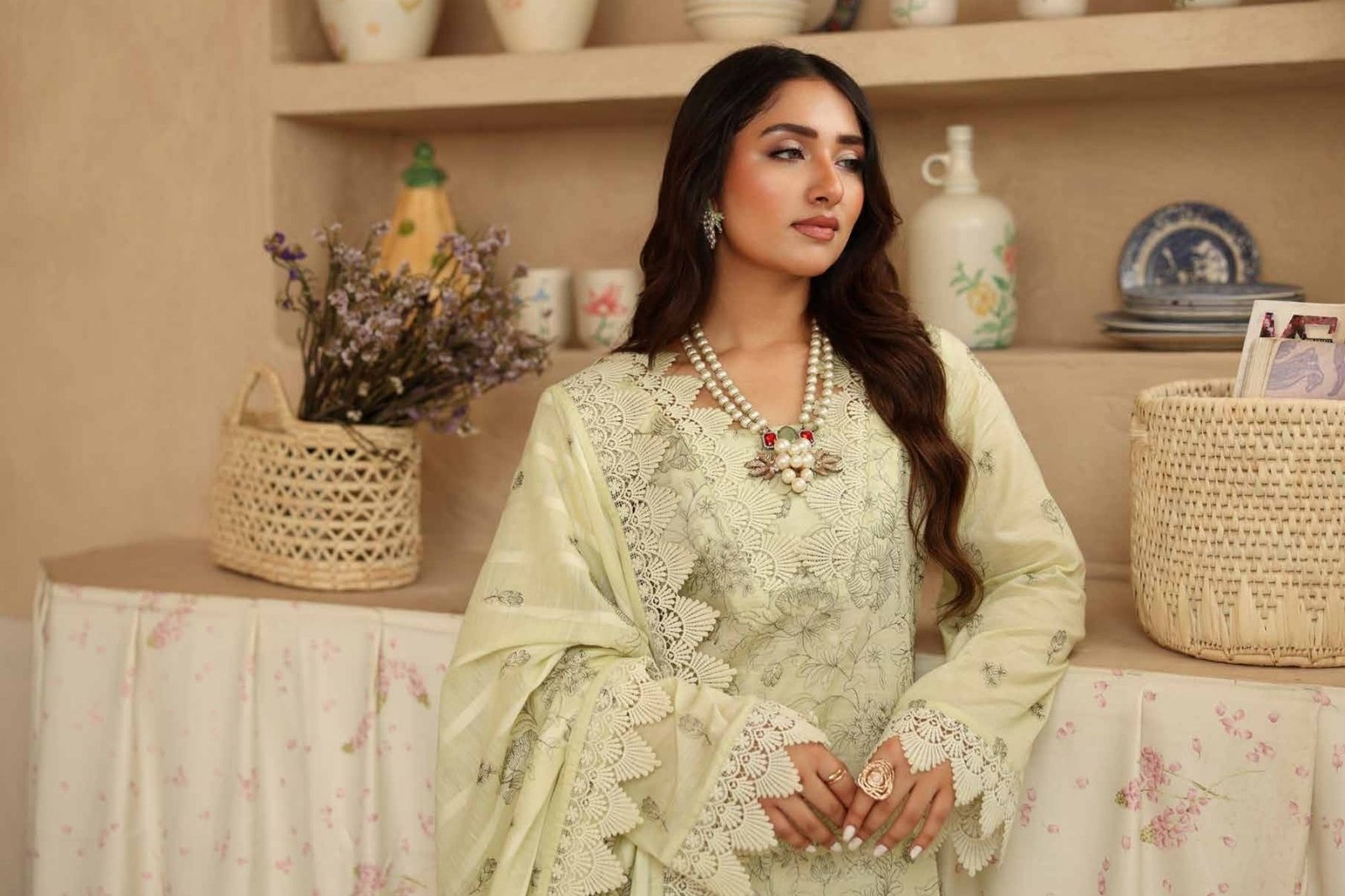 Features delicate floral embroidery on premium lawn fabric, enhanced with intricate lace borders and elegant neckline detailing. - Stylish Dupatta with Lace Finish: