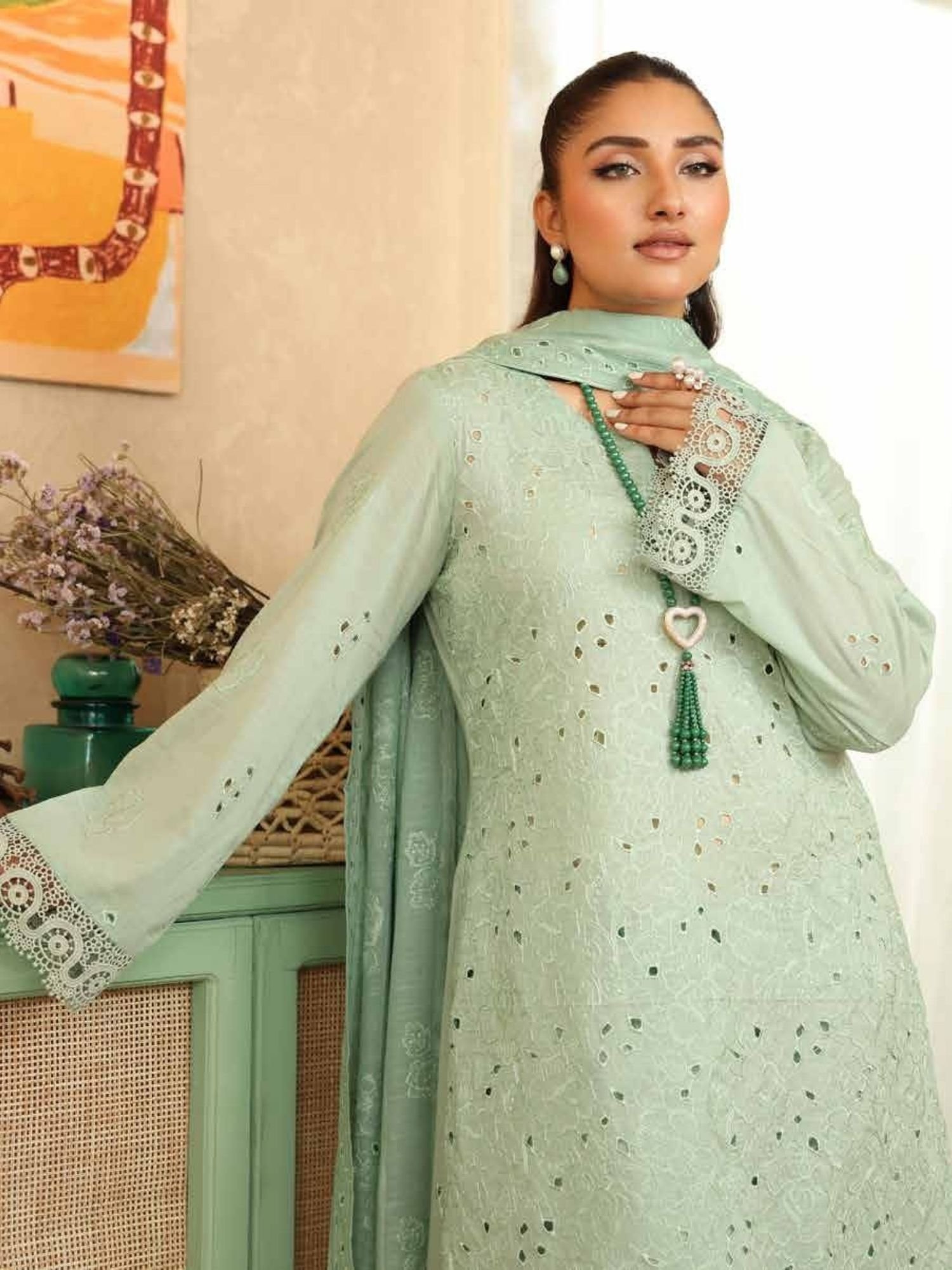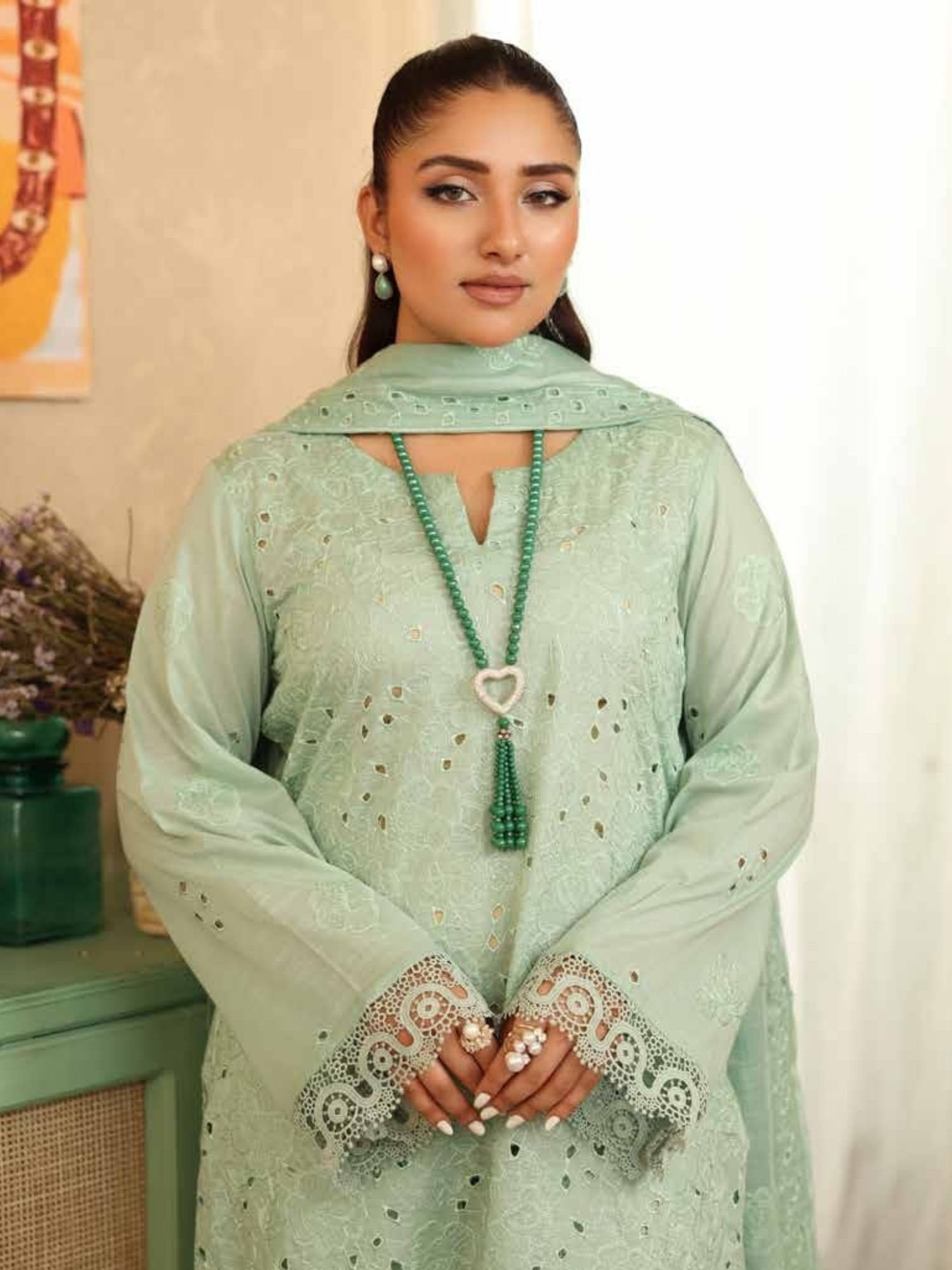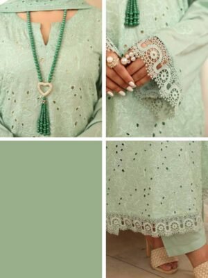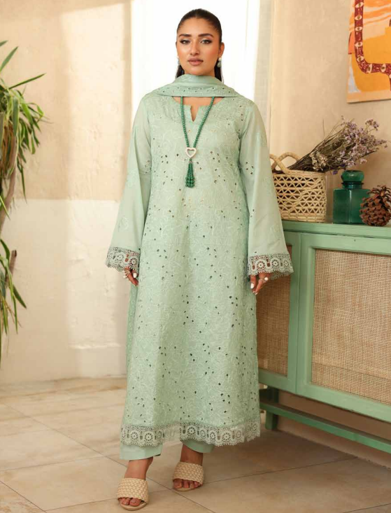 Designed with delicate cutwork and fine embroidery on premium lawn fabric, featuring an elegant neckline and beautifully finished sleeves. - Stylish Dupatta with Subtle Detailing: