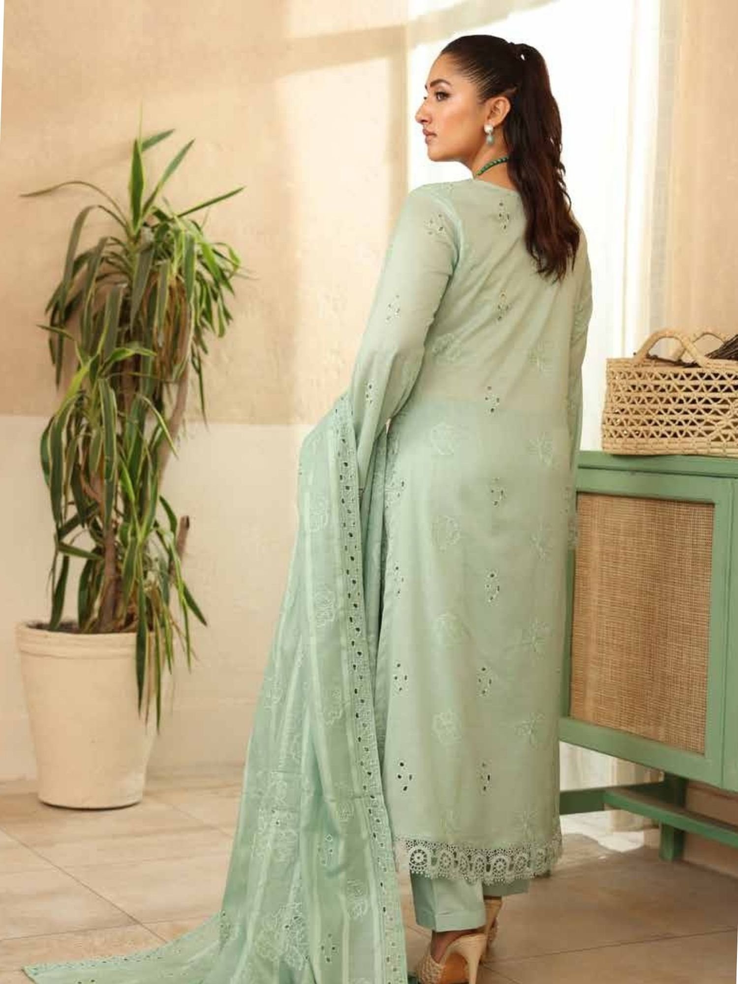 Comes with a soft, lightweight matching dupatta enhanced with minimal patterns for a clean and classy look. - Plain Trouser for Balance: