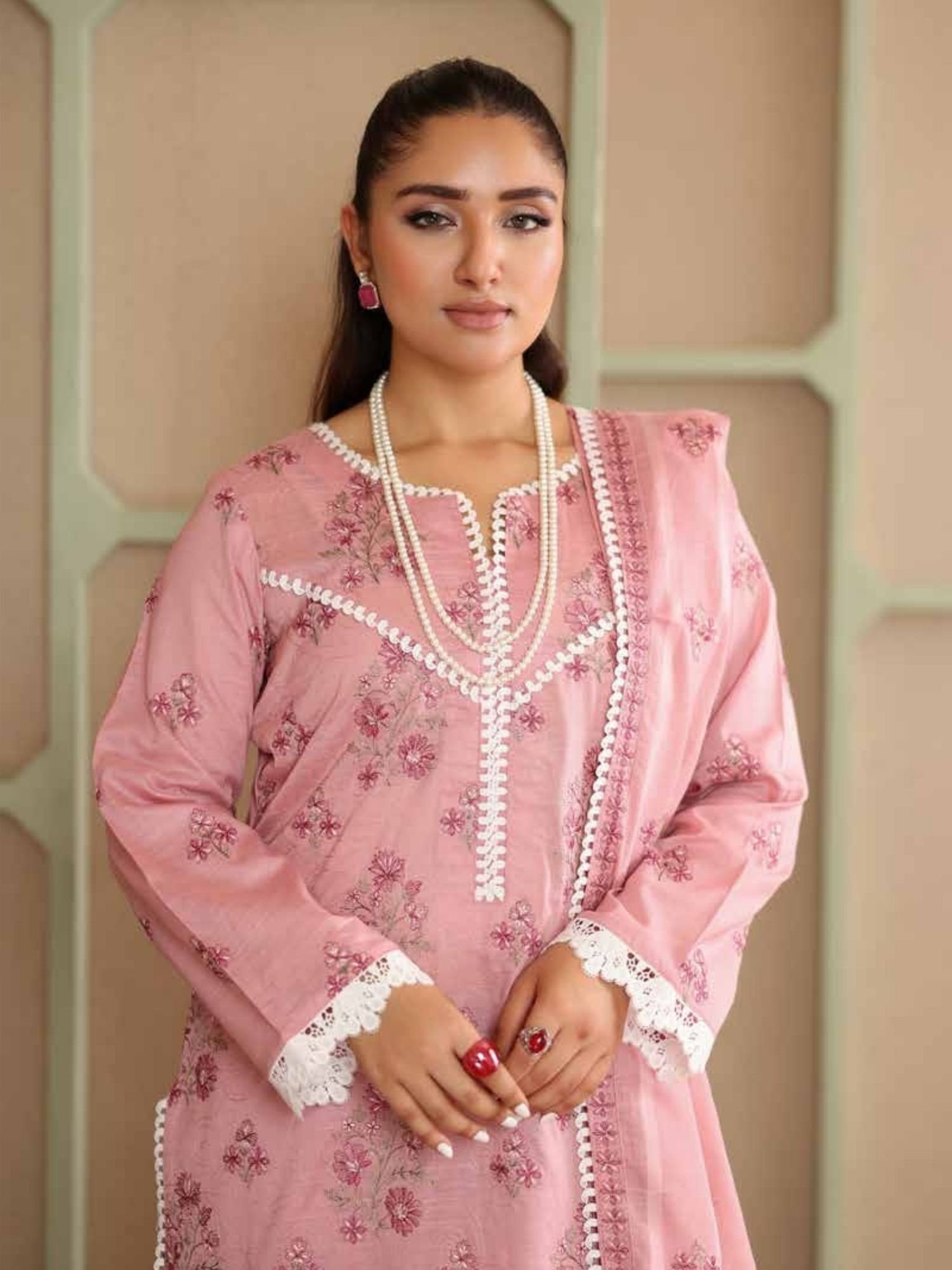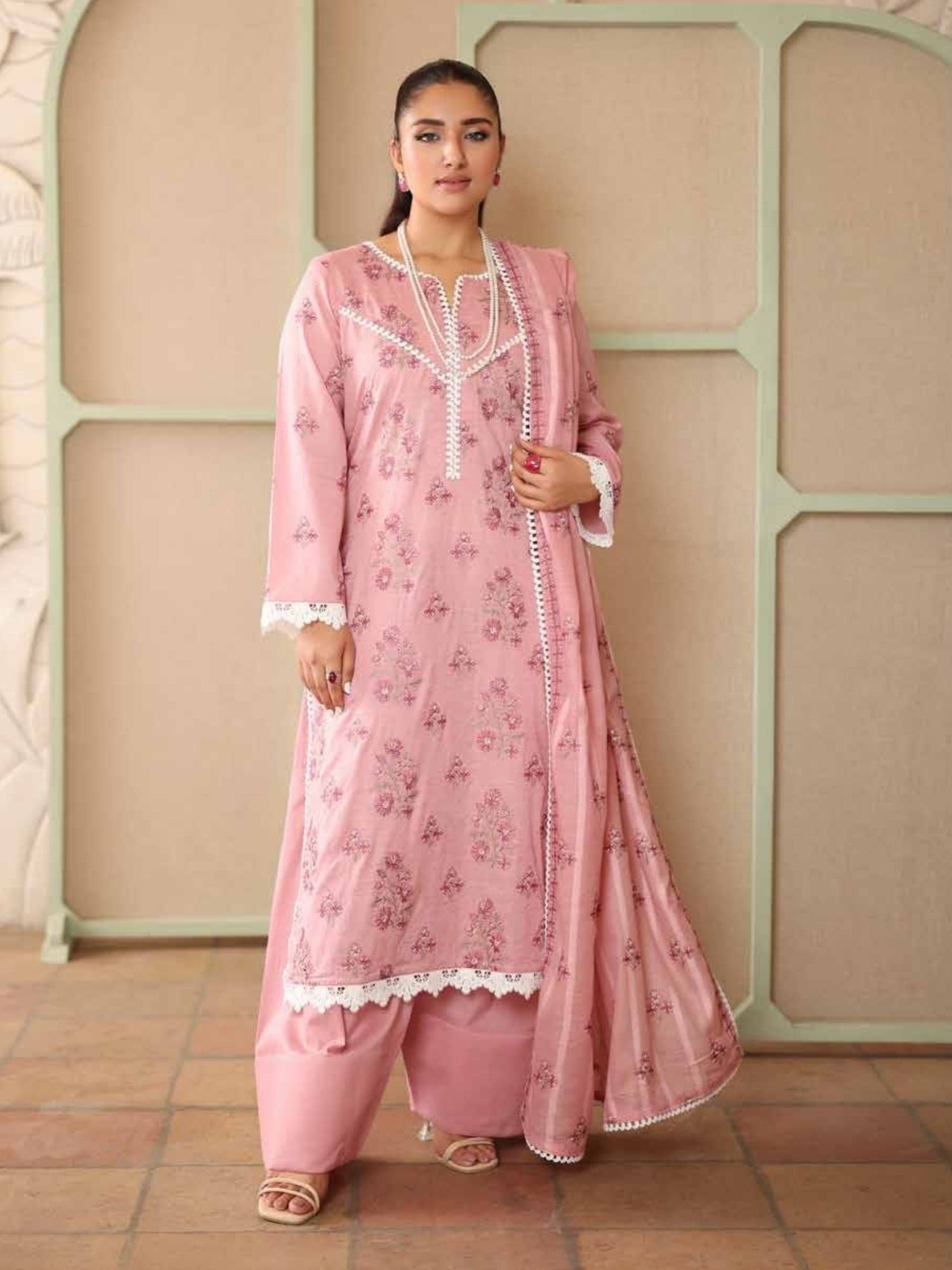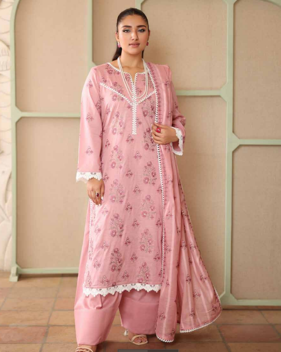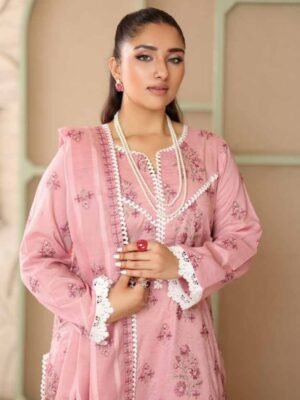 Features delicate floral embroidery on premium-quality lawn fabric, enhanced with elegant neckline detailing and beautifully finished sleeves. - Stylish Dupatta with Fine Prints: