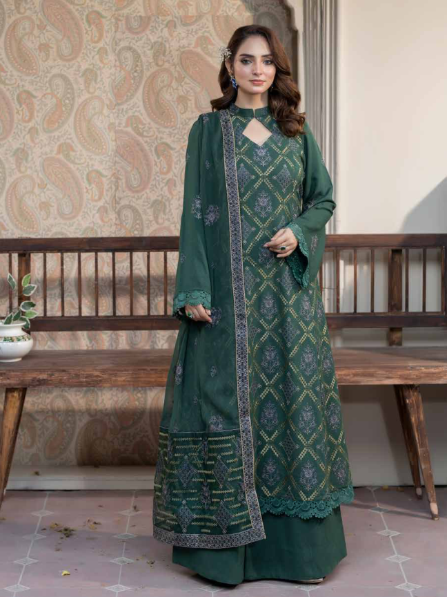 Radiate timeless charm with Noor-e-Fajar Muskan KR-173, an elegant ensemble crafted from plain Karandi fabric and paired with a luxurious Bamber chiffon dupatta. The intricate embroidery adds a touch of finesse to the breathable Karandi, making it perfect for formal or festive settings. This outfit balances tradition with modern aesthetics, ensuring you make an unforgettable statement.