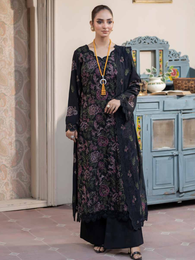 Radiate timeless charm with Noor-e-Fajar Muskan KR-174, an elegant ensemble crafted from plain Karandi fabric and paired with a luxurious Bamber chiffon dupatta. The intricate embroidery adds a touch of finesse to the breathable Karandi, making it perfect for formal or festive settings. This outfit balances tradition with modern aesthetics, ensuring you make an unforgettable statement.