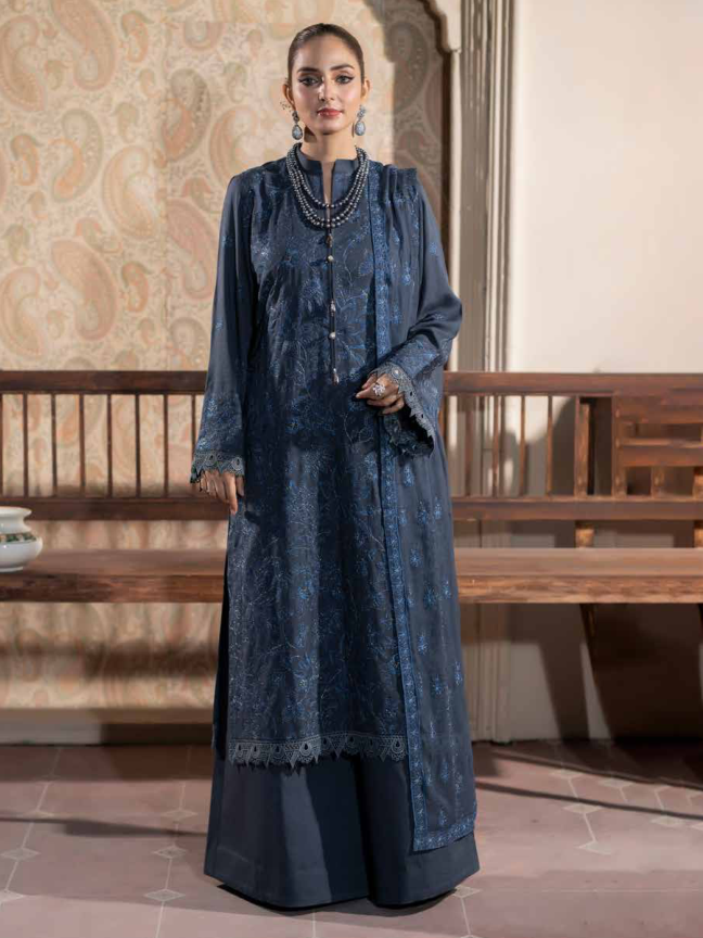 Radiate timeless charm with Noor-e-Fajar Muskan KR-177, an elegant ensemble crafted from plain Karandi fabric and paired with a luxurious Bamber chiffon dupatta. The intricate embroidery adds a touch of finesse to the breathable Karandi, making it perfect for formal or festive settings. This outfit balances tradition with modern aesthetics, ensuring you make an unforgettable statement.