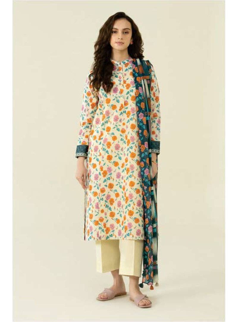 Elevate your wardrobe with Sapphire’s unstitched 3-piece lawn suit, featuring a printed lawn shirt, a printed voile dupatta, and dyed cambric trousers.