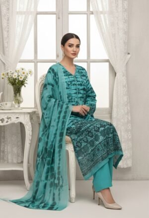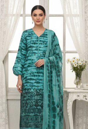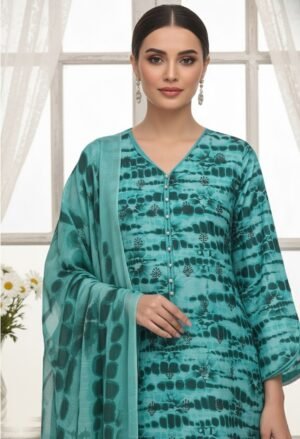 The Shaista Printed Lawn Embroidery No: 502 is a refreshing and graceful summer ensemble featuring soothing teal and aqua tones. Designed with modern abstract prints and a balanced color palette, this 3-piece unstitched lawn suit is perfect for women who appreciate calm elegance with a contemporary touch.