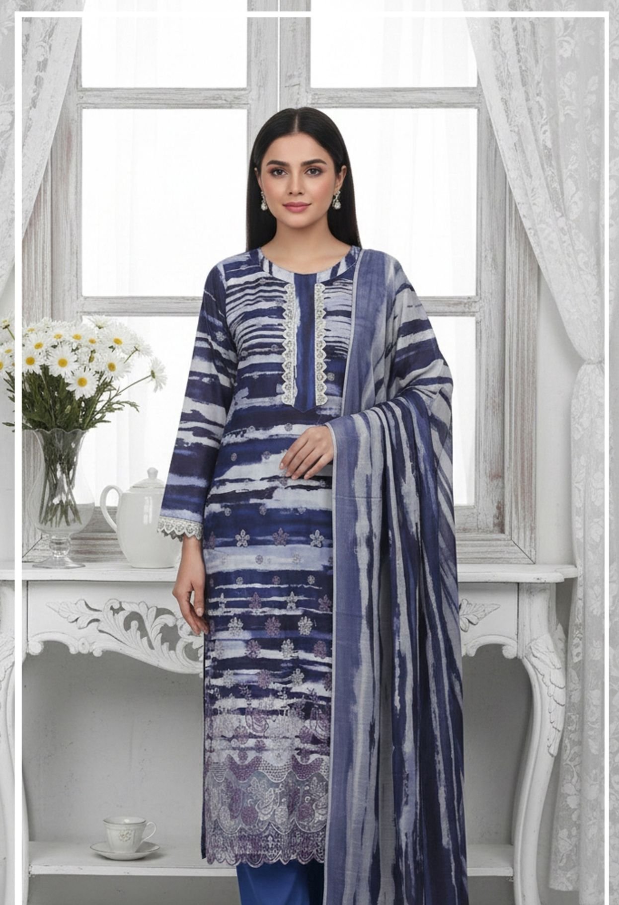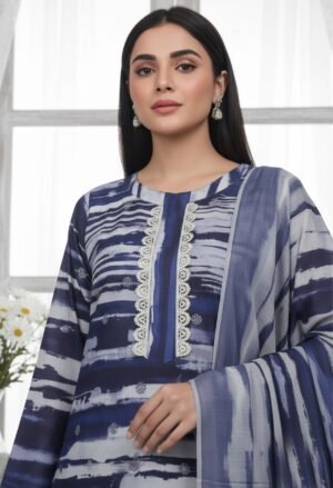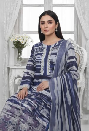 The Shaista Printed Lawn Embroidery No: 512 is a graceful blend of modern prints and delicate embroidery, crafted on a sophisticated navy-blue base. Designed for women who appreciate refined summer fashion, this premium 3-piece unstitched lawn suit is ideal for everyday elegance and semi-formal occasions.