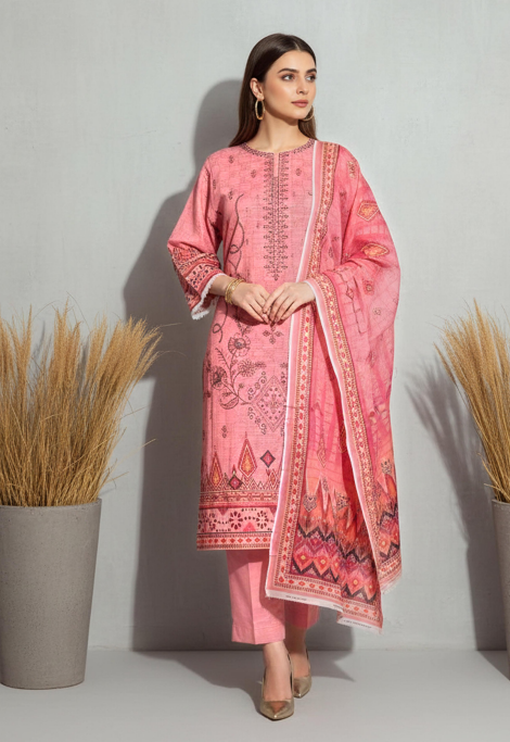 The Tehzeeb Mehir Banu Vol 28 D-02 showcases a soft pink color palette enriched with graceful traditional motifs and finely detailed borders. The elegant composition delivers a refreshing summer look, perfect for casual and semi-formal wear.