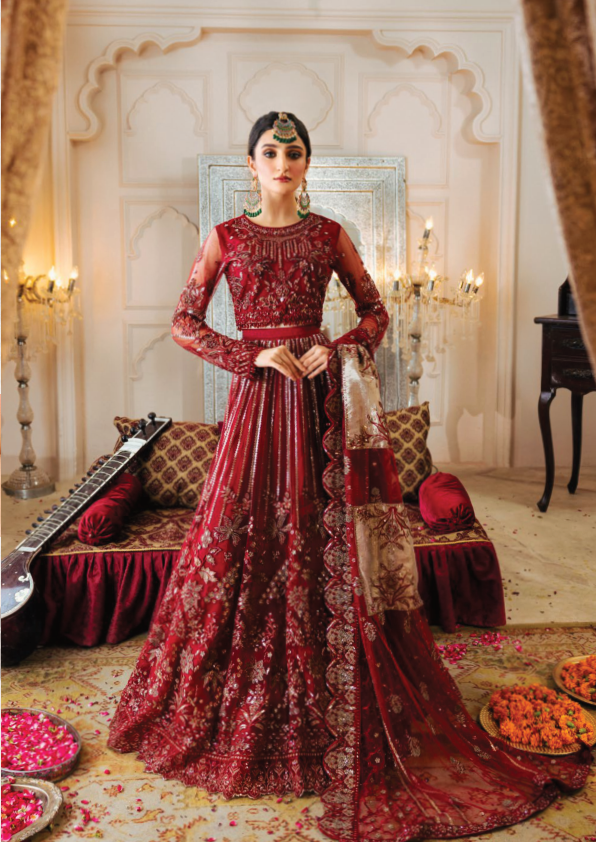 Indulge in elegance with our exquisite Maroon chiffon 3-piece embroidered unstitched lehenga dress, a perfect blend of sophistication and traditional craftsmanship. This luxurious ensemble is designed for the modern woman who appreciates timeless fashion with a contemporary touch.